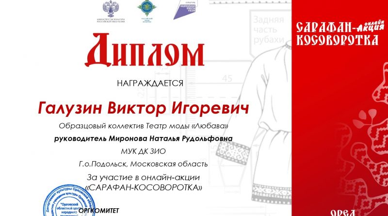 Читать далееЛетом мы писали пост об участии в онлайн-акции «Сарафан — косоворотка» участника образцового коллектива Театр моды «Любава». Подробнее об этом