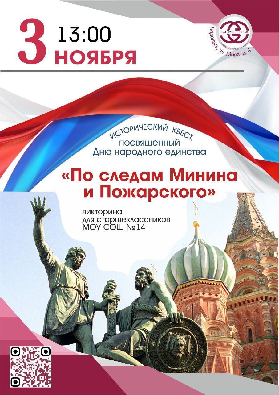 3 ноября: Исторический квест «По следам Минина и Пожарского» — посвященный дню народного единства.