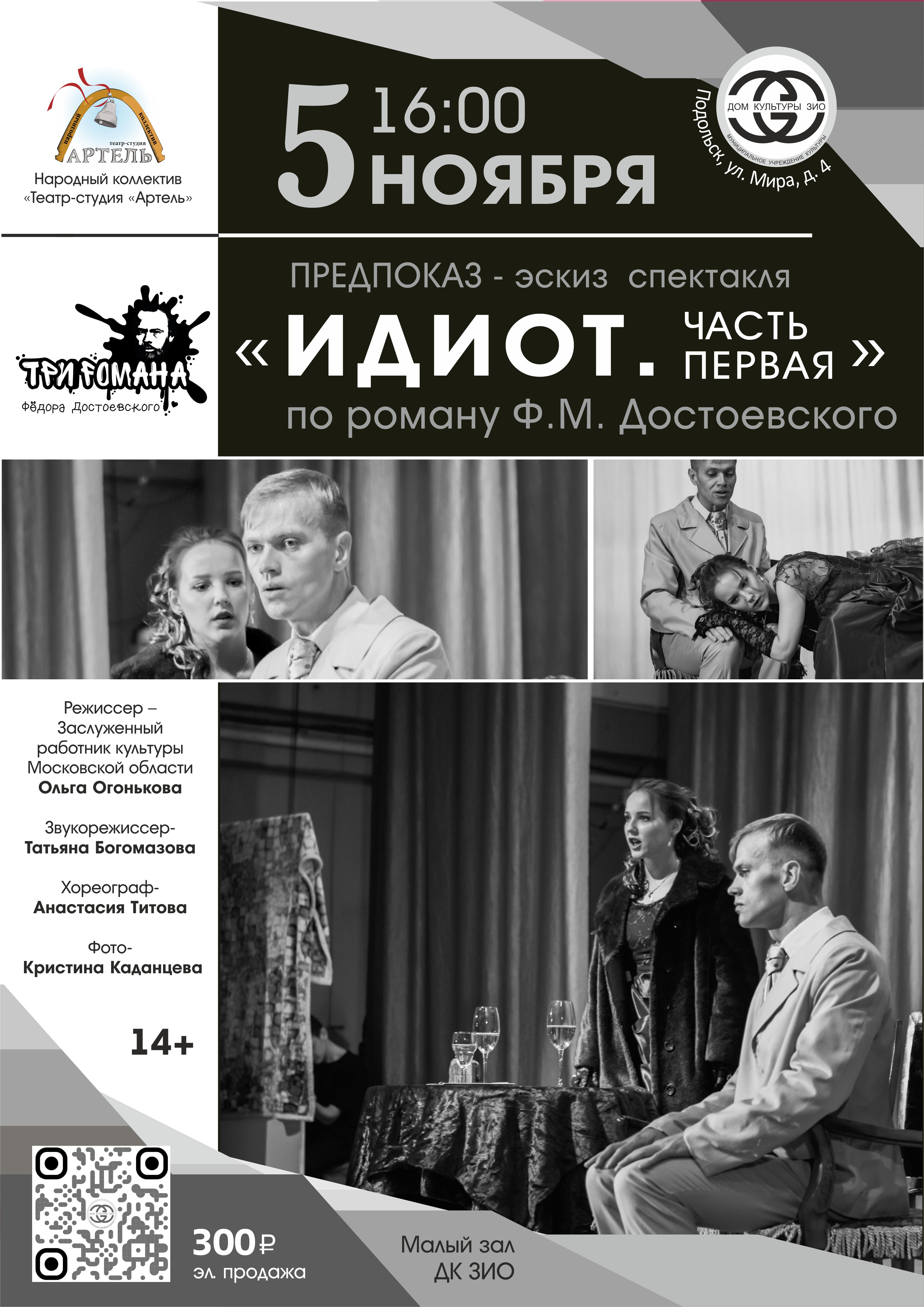 5 ноября: Предпоказ — эскиз спектакля «Идиот» часть 1 — окунитесь в захватывающую атмосферу произведения Ф.М. Достоевского.