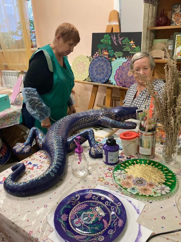Участники Народного коллектива «Студия ДПИ «Рукодельница» создают потрясающую серию работ с использованием точечной росписи. Их творения объединяет цветовая гамма и уникальная техникой нанесения узоров. Точечная роспись — это древнее искусство, в котором маленькие точки наносятся на холст или другую поверхность, чтобы создать изображение. Каждая работа выражает творческую мастерство и неподражаемый стиль участников коллектива.