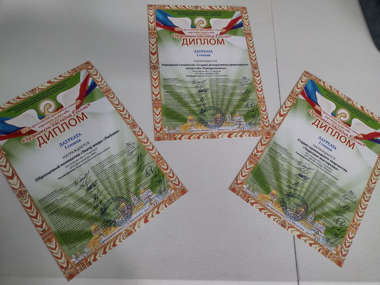 12 июня четыре творческих коллектива МУК ДК ЗИО стали Лауреатами Всероссийского фестиваля — конкурса народного творчества «Хранители наследия России». Организаторы конкурса: