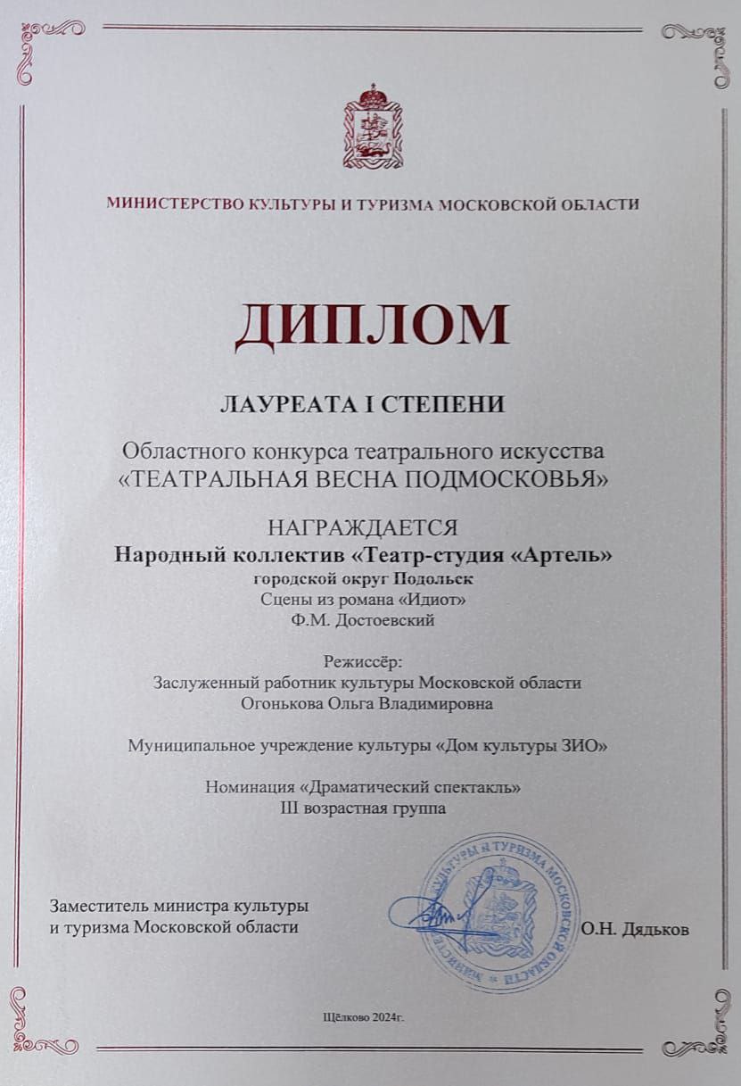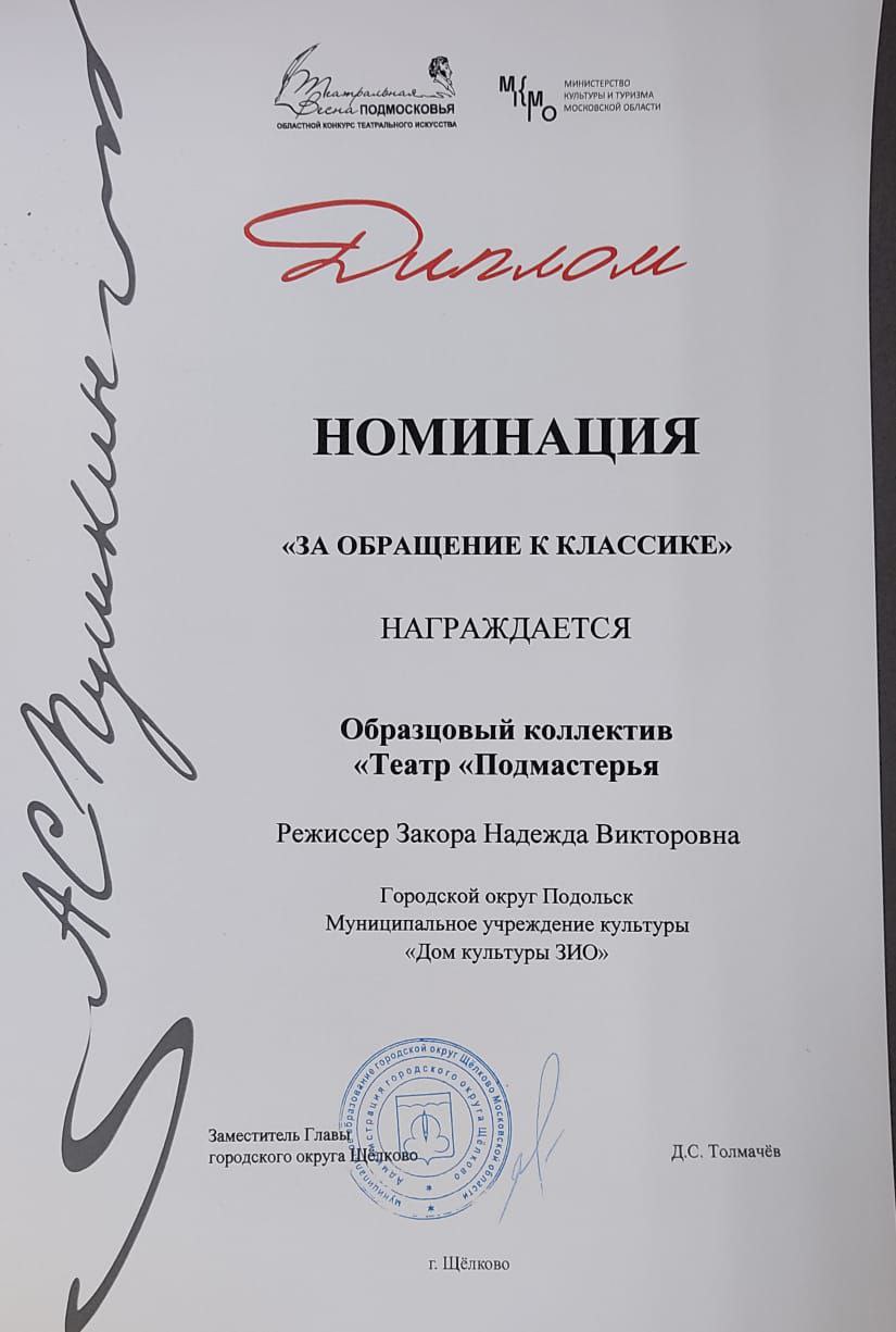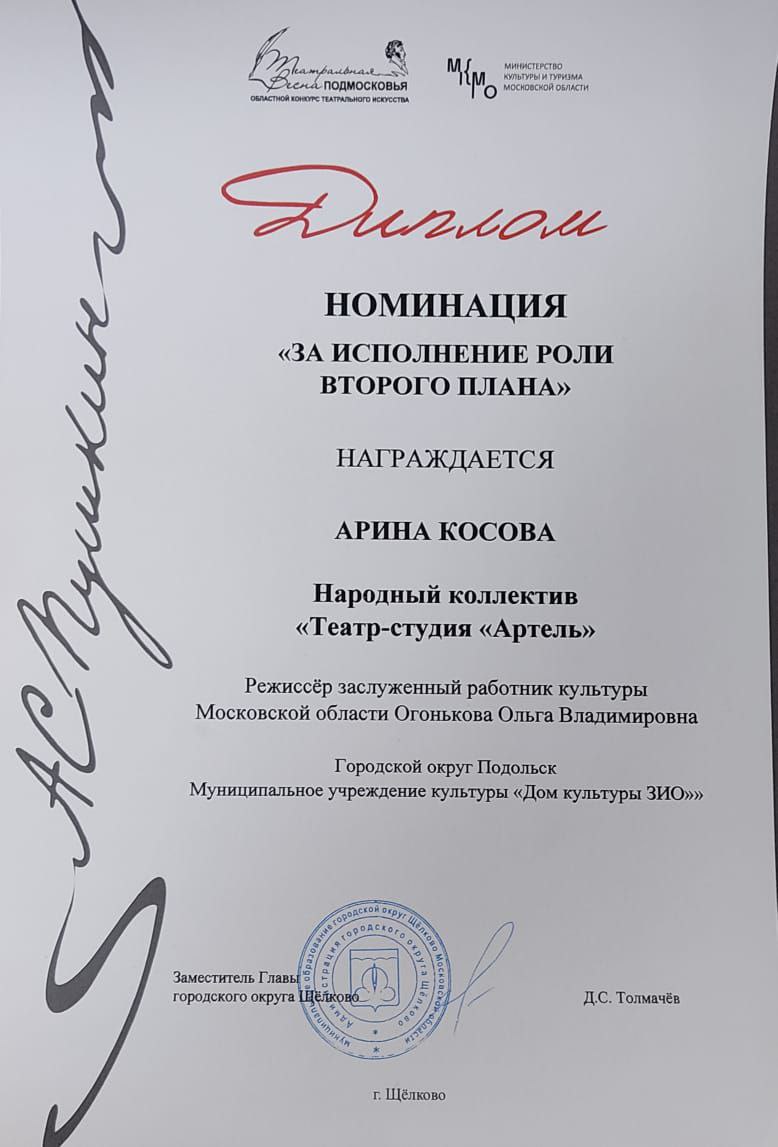 Поздравляем НК «Артель» и ОК «Театр «Подмастерья» с заслуженными наградами на Московском областном фестивале «Театральная весна Подмосковья»!