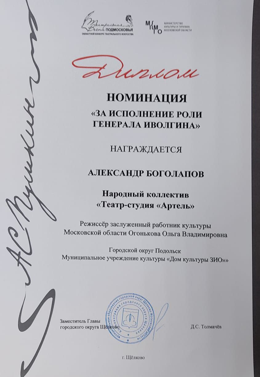 » За исполнение роли генерала Иволгина»- Александр Боголапов