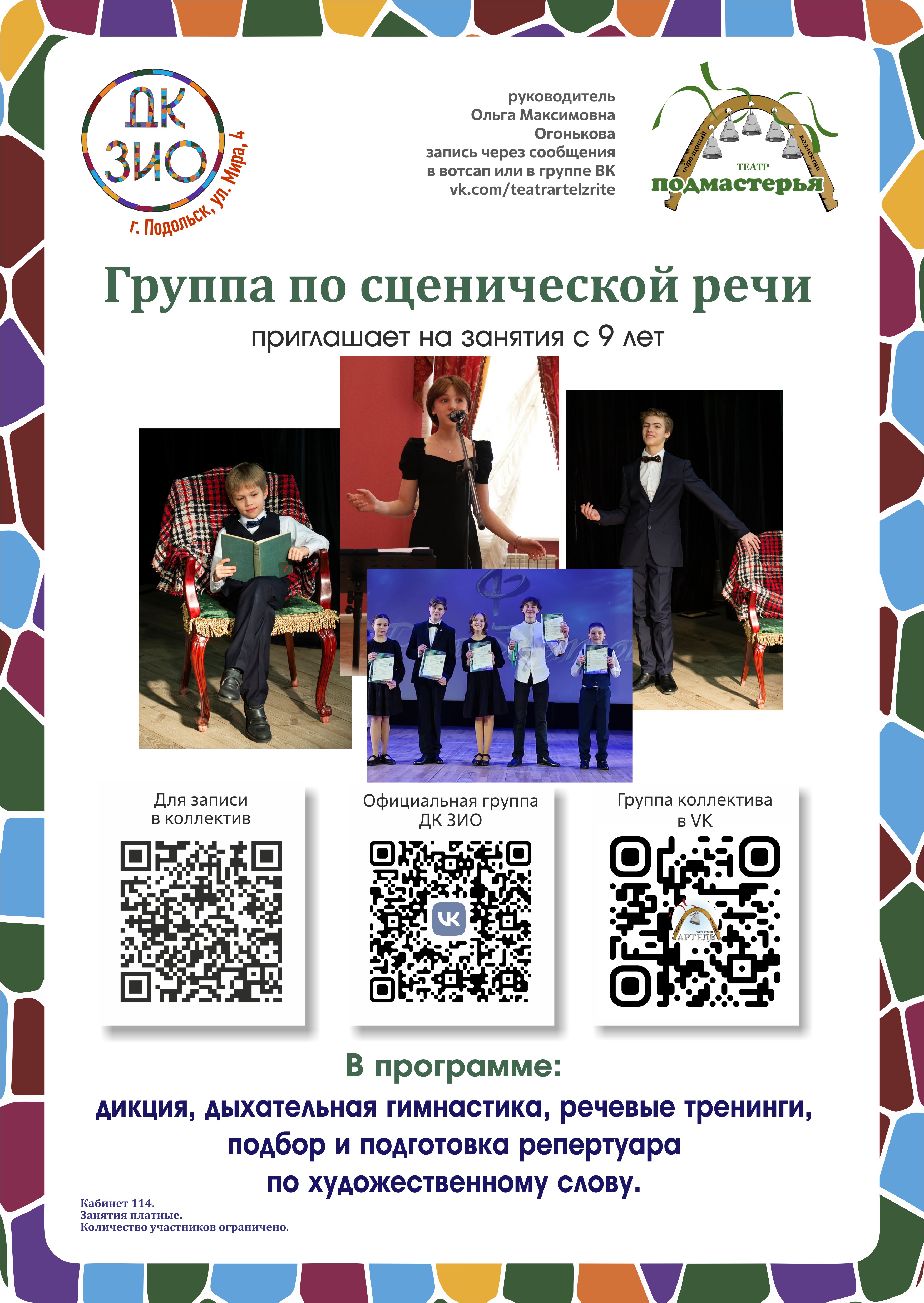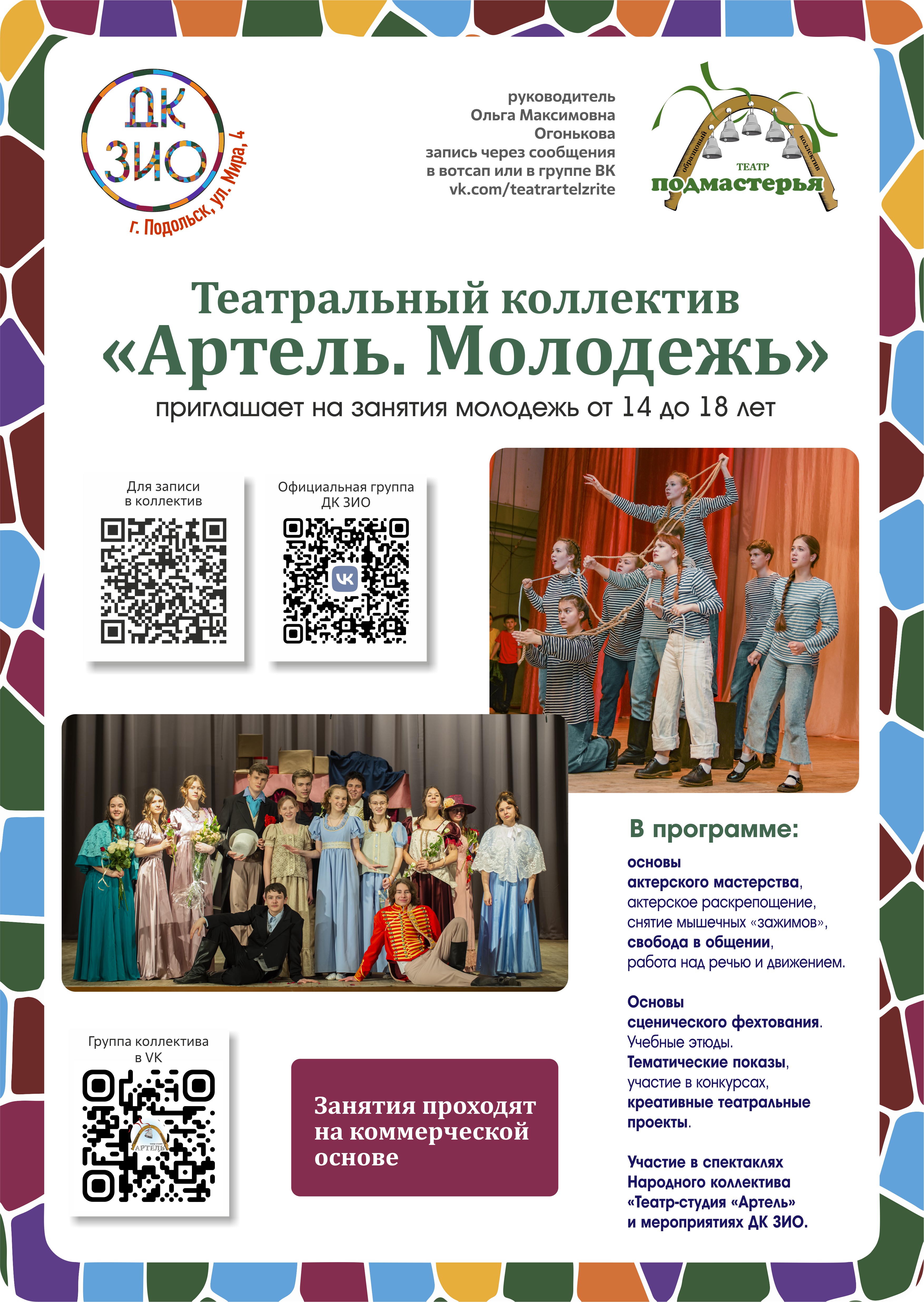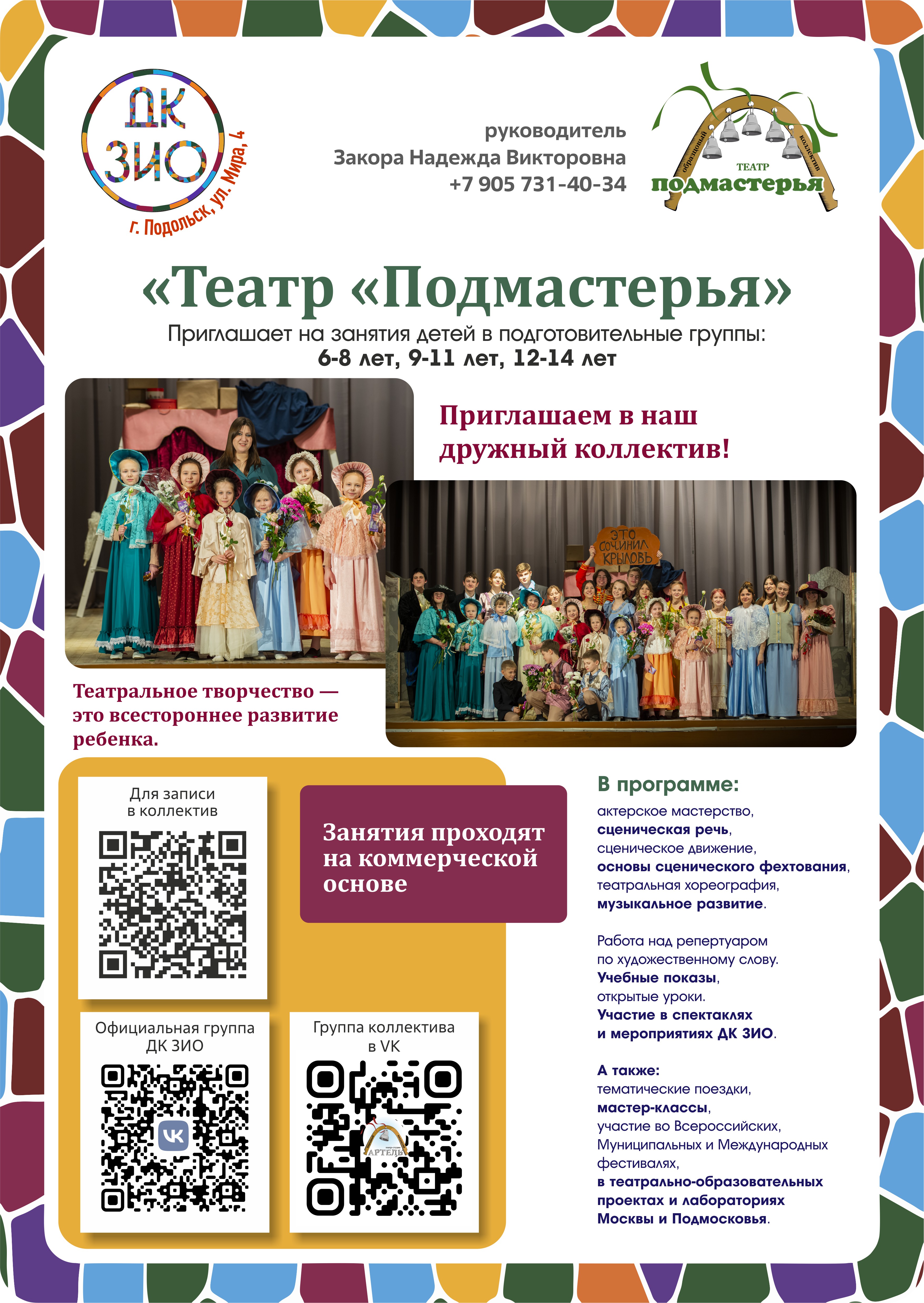Узнать больше о коллективах и записаться на занятия вы можете на портале https://clck.ru/34r4t4