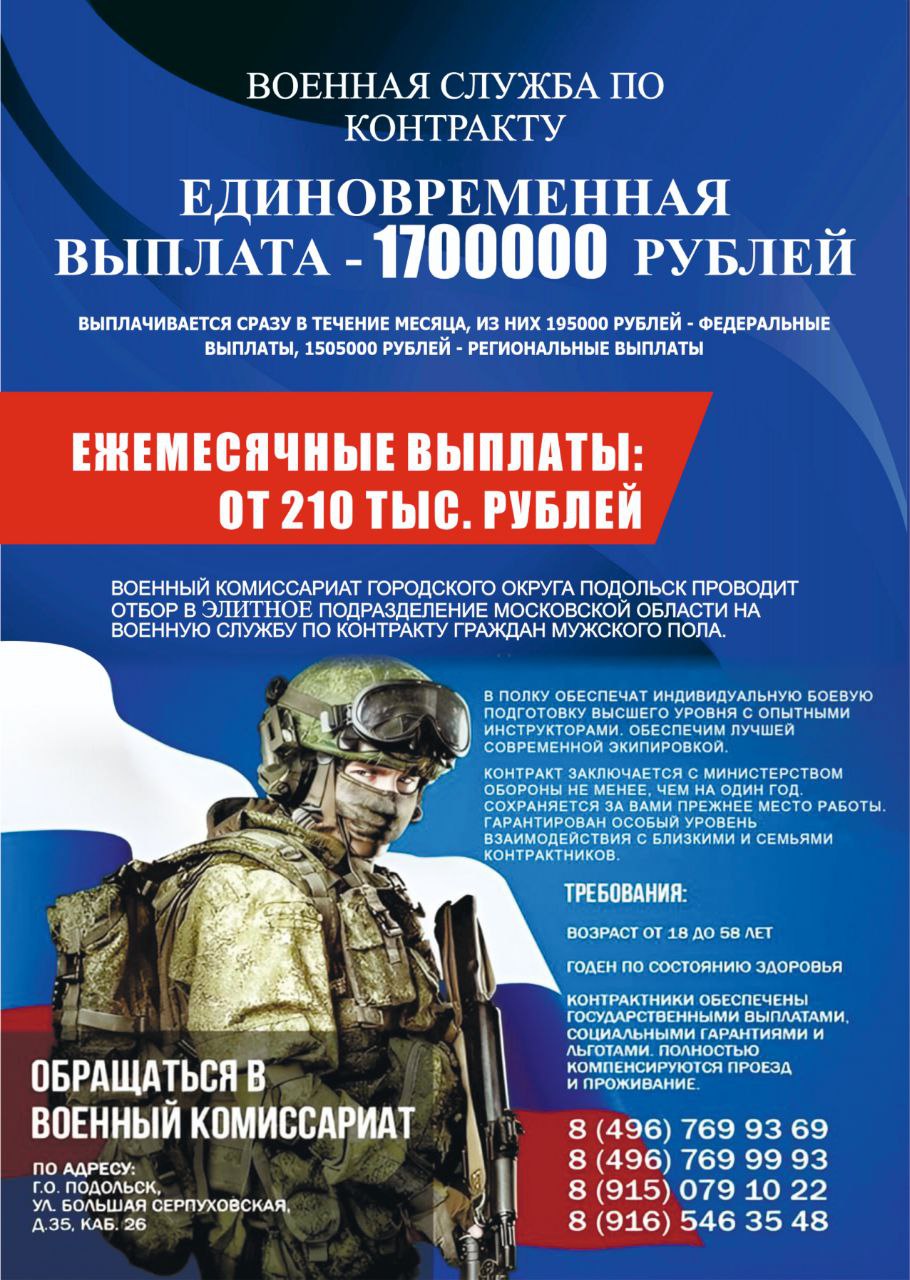 Военный комиссариат городского округа Подольск проводит отбор в ЭЛИТНОЕ подразделение Московской области на военную службу по контракту граждан мужского пола.
