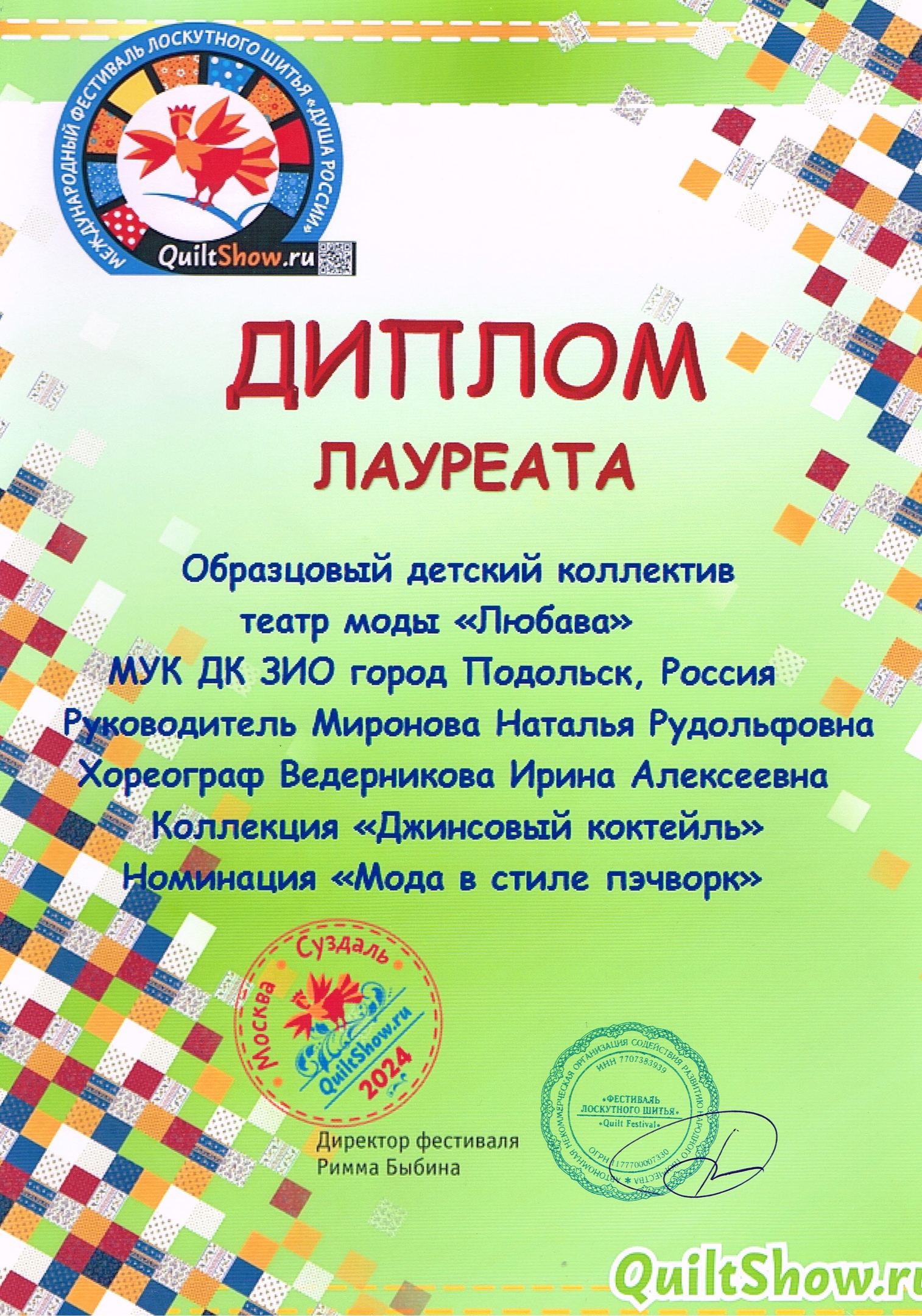 Образцовый коллектив Театр моды «Любава» вновь подтвердил свой высокий профессиональный уровень, став Дважды Лауреатом на конкурсе «Мода в стиле пэчворк» в рамках фестиваля Лоскутного шитья «Душа России».